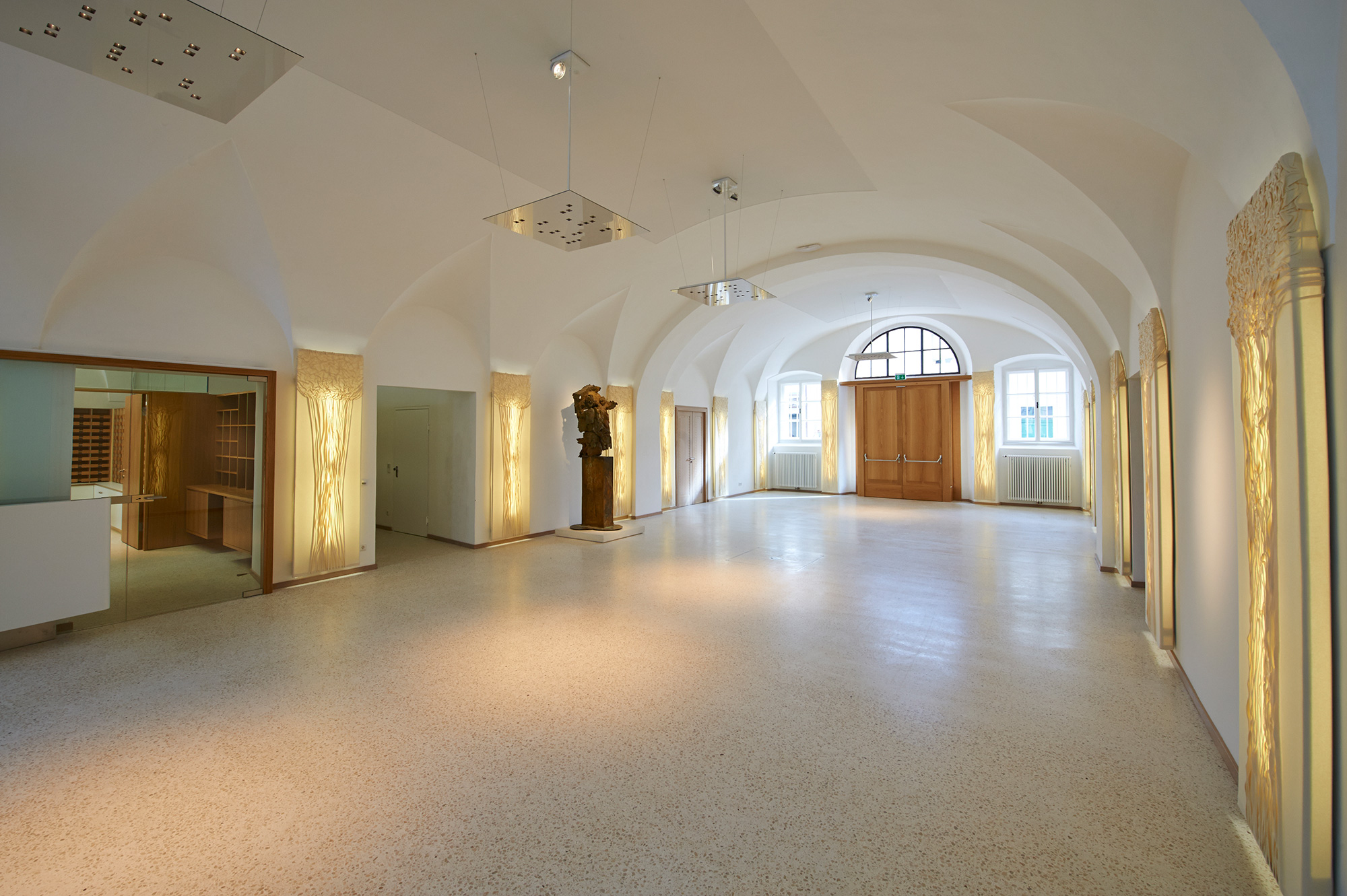 Das neugestaltete Foyer des erzbischöflichen Palais in Salzburg, 2014. Das Werk von Idams Kollegen Christof Hillebrand aus Strobl am Wolfgangsee. Der gelernter Zimmermann ist als planender Baumeister in Salzburg tätig und legt besonderen Wert auf den persönlichen Kontakt zu einem Kreis hochqualifizierter Bauhandwerker. Detaillösungen werden oft im gemeinsam im Gespräch erarbeitet.