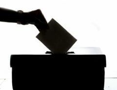 • Eine Person wirft einen Wahlzettel in die Wahlurne.