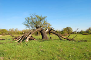 Diesen alten Spruch sollte man auf keinen Fall befolgen. Jede Erhebung oder Baumgruppe in einem flachen Gelände ist bei Gewitter eine Gefahr, weil sie wie ein Blitzableiter wirkt. Bäume stellen dabei eine zusätzliche Gefahrenquelle dar: Wird ein Baum von einem Blitz getroffen, entstehen extrem hohe Temperaturen. Dadurch verdampft das Wasser im Baum explosionsartig, was dazu führt, dass Äste oder Teile des Stammes weggesprengt werden.