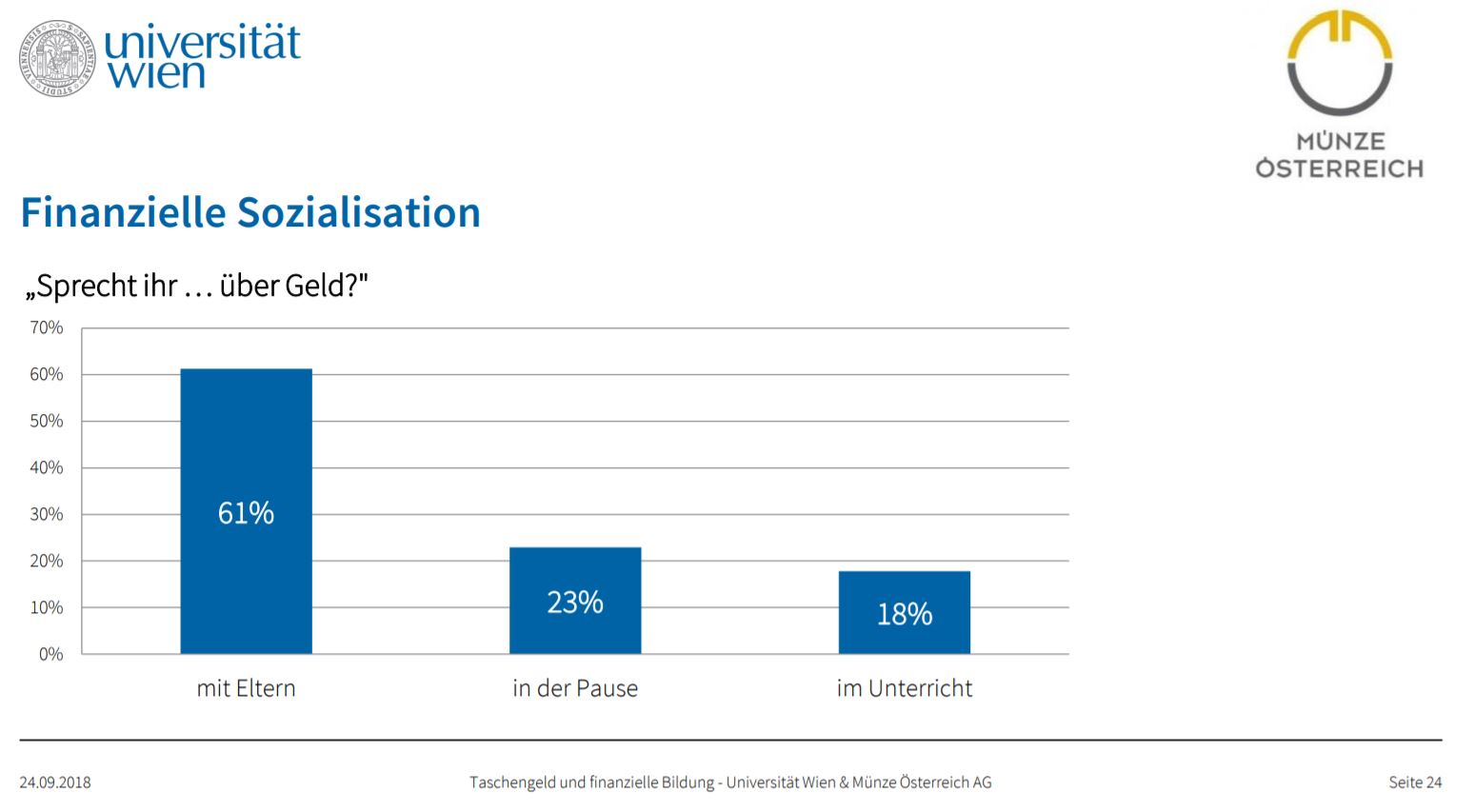 „Obwohl Taschengeld gängige Praxis ist, berichten die meisten Schülerinnen und Schüler, dass im Unterricht kaum über Geld gesprochen wird,“ so Graf. Wird im Unterricht über Geld gesprochen, kommt dieses meist nur in Textbeispielen im Fach Mathematik vor. Wie man mit Geld verantwortungsvoll umgeht, ist kaum Thema.