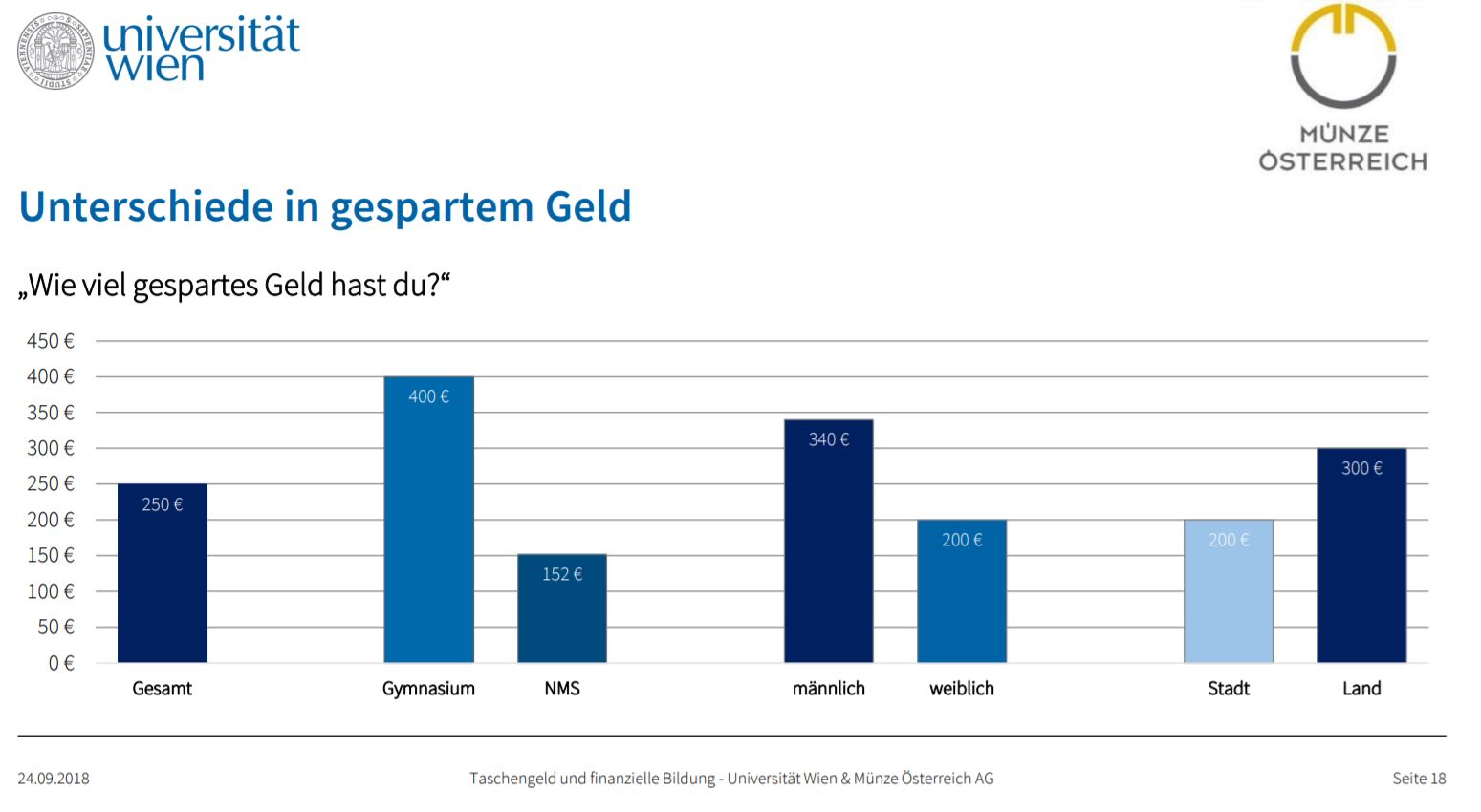 Am meisten sparen Kinder, die auf eine AHS gehen, und Burschen (Angaben im Mittel). Foto: Universität Wien & Münze Österreich AG.