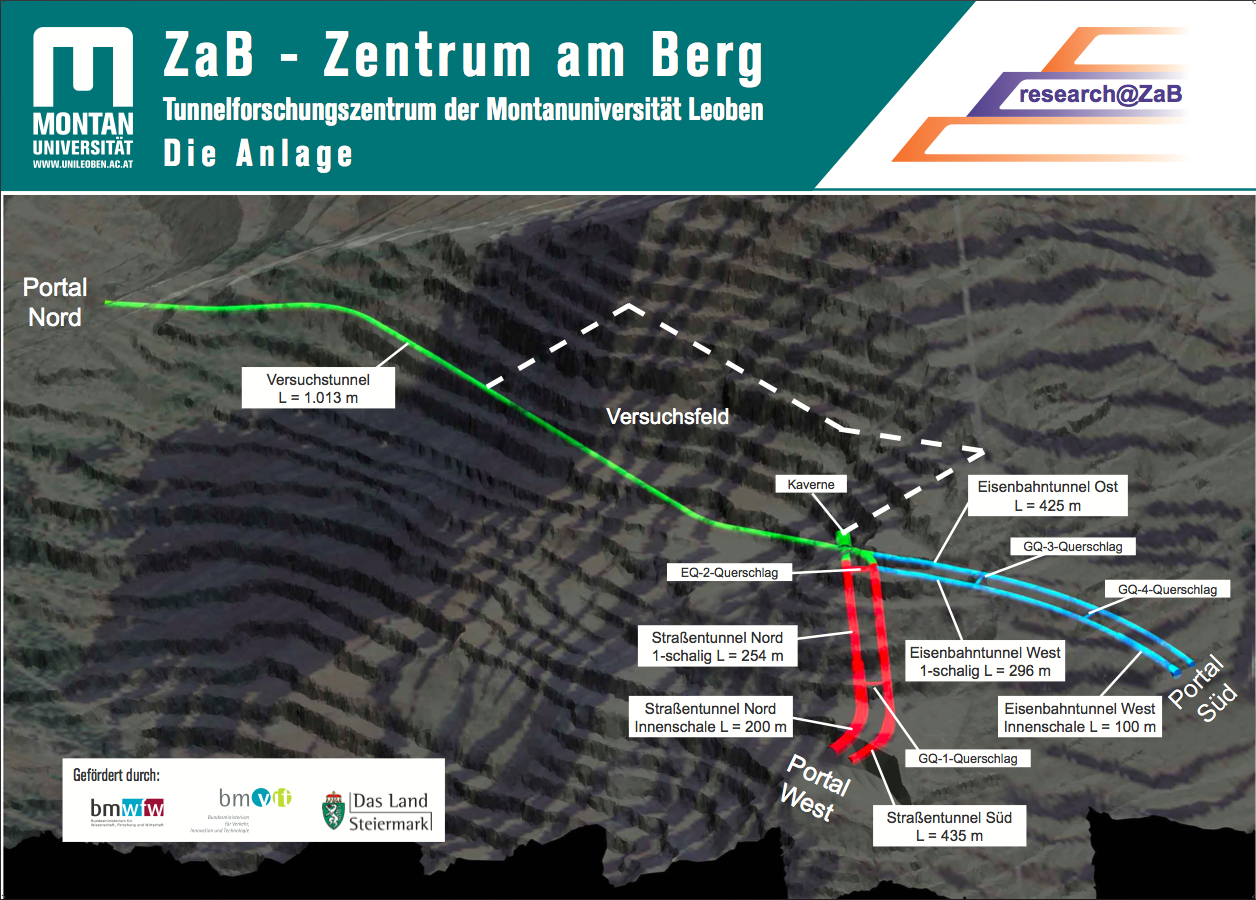 Es ist kein Zufall, dass der Spatenstich für das ZaB in Österreich erfolgte. Oder anders ausgedrückt: Österreich ist nicht nur ein Land der Berge, sondern auch ein Land der Tunnel – so auch die Devise am Lehrstuhl in Leoben. ,„Es gibt zwar einige Universitäten weltweit, die über Untertagebauwerke verfügen – zum Beispiel die Universität Freiburg – es ist uns aber keine bekannt, die ausgebaute Straßentunnels in dieser Länge (400 Meter, Anm.) besitzt“, sagt Erhard Skupa, Leiter der Abteilung für Öffentlichkeitsarbeit an der Montanuniversität.